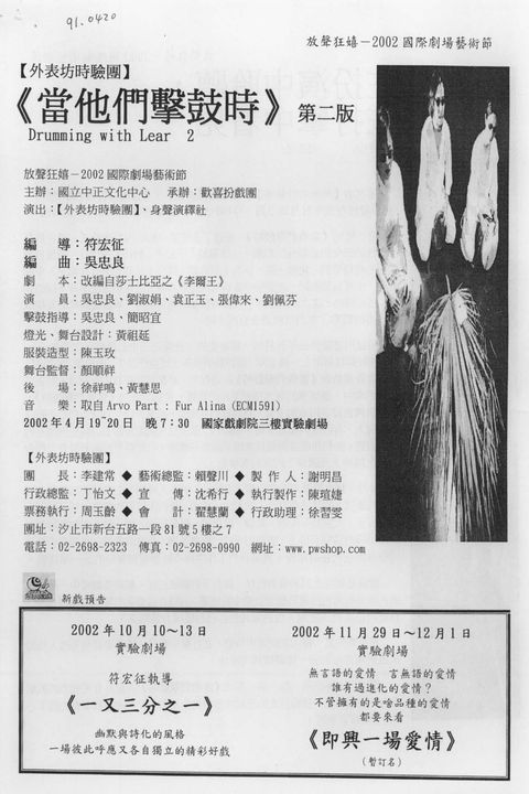 放聲狂嬉-2002國際劇場藝術節:外表坊時驗團-《當他們擊鼓時》第二版-節目單
