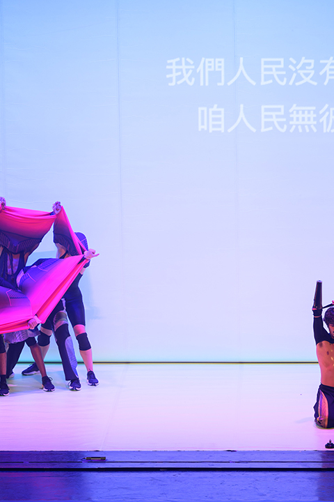 隨著舞者們聚合成群,展示自身如旗幟並在字幕中一齊高聲吟唱,需要舞蹈重新發明「我們」的原因昭然若揭——舞蹈從來不是斷簡殘篇去脈絡的美感形式和表達工具,我們跳舞,是因為舞蹈將我們跳在一起。通過身體在一起,一切從邊陲起義的抗爭,將以最痛快淋漓、鮮活貼地的力量,逼近所有獨裁強權的古老心臟。