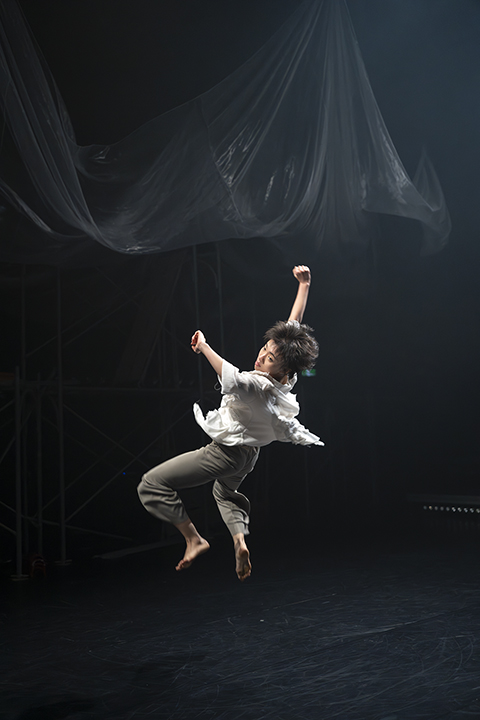 秋杉所在自2023年起跟隨琉璃瓦工班於高雄、台南、嘉義、彰化等地方廟宇,進行琉璃瓦鋪設工程的觀察與創作走訪。《大吻琉璃》透過當代身體講述琉璃瓦工、勞工工安與生存環境的問題。藉劇場搭起與瓦工們的相遇,或許有一個片刻,那些關於生存的事,在不曾交會的感受與記憶中將有所共鳴。