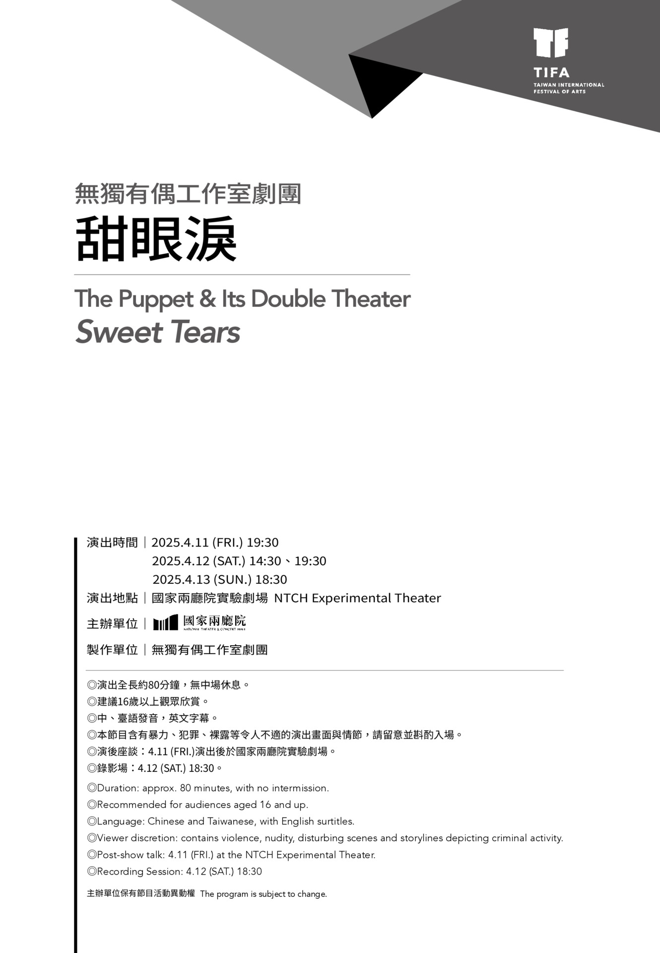 無獨有偶工作室劇團《甜眼淚》 : 2025TIFA 無獨有偶工作室劇團《甜眼淚》